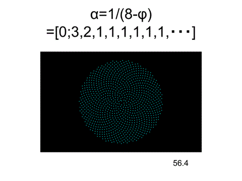 360×1/(8-φ)=56.4°=[0;6,2,1,1,1,1,1,1,・・・]