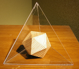 今回のコラムでは,中川宏さんが製作された正四面体に内接する最大の正多面体のアクリル模型を紹介したい.