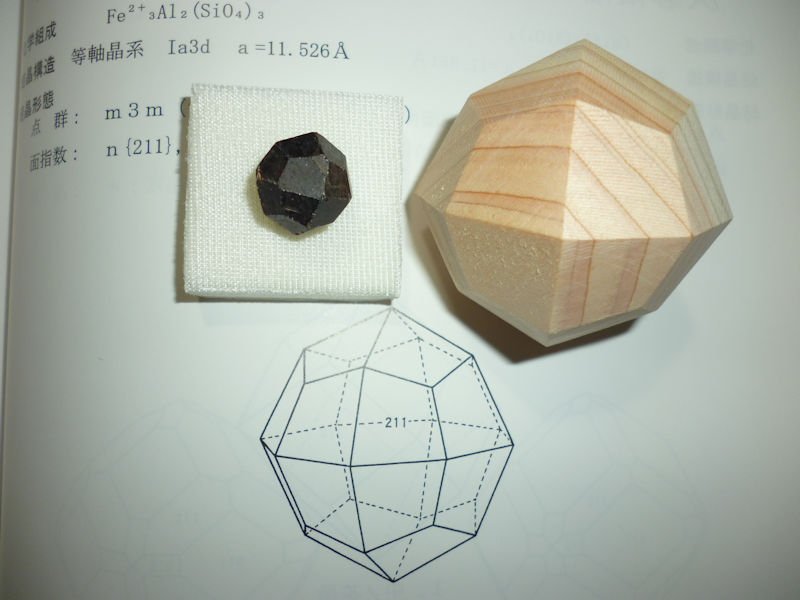 村井さんにいただいたザクロ石の鉱物標本の二面角を計測しましたが、木工模型とほぼ一致しました. (中川宏)