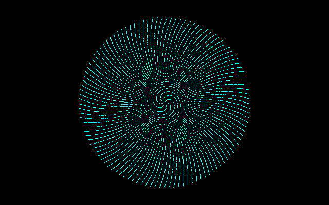 α=π-3のとき、中心部に7本のらせんがみられるが、これはα=π-3〜22/7-21/7=1/7に近いことによる。