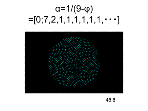 360×1/(9-φ)=48.8°=[0;7,2,1,1,1,1,1,1,・・・]