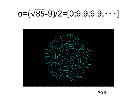 なぜ植物にフィボナッチ数が現れるのかという米倉崇晃先生(東大)の発表は,これまでの通説