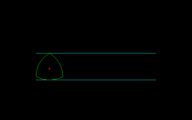 ルーローの三角形を転がすと高さは一定に保たれるが、重心の位置は一定でない。